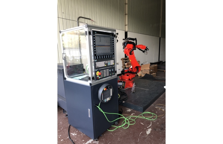 2019-TIMTOS台北國際工具機展,柯馬手臂與西門子840D合體,最大亮點,手臂是CNC控制器控制,機器人路徑是用G code跟M code寫.